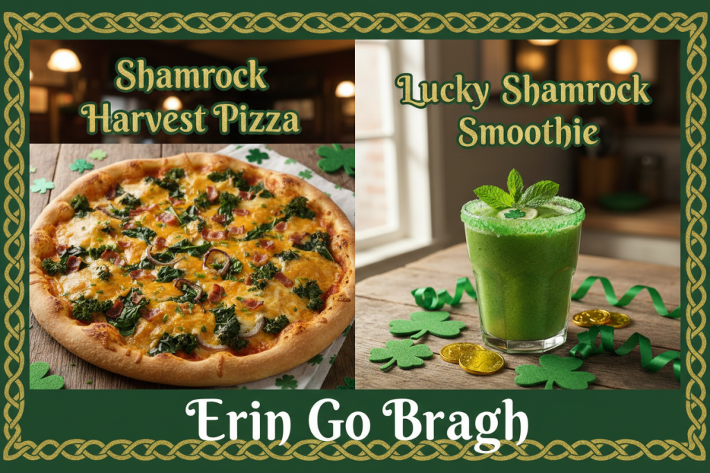 Celebrate St. Patrick's Day with Our Shamrock Harvest Pizza and our Lucky O' Shamrock Smoothie -A St. Patrick's Day Treat